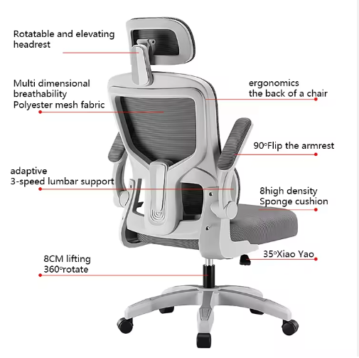Designed with a high-back ergonomic structure, this chair supports your entire spine—from lower lumbar to upper back and neck. The contoured design promotes proper posture, helping reduce strain, fatigue, and discomfort during long sitting hours.