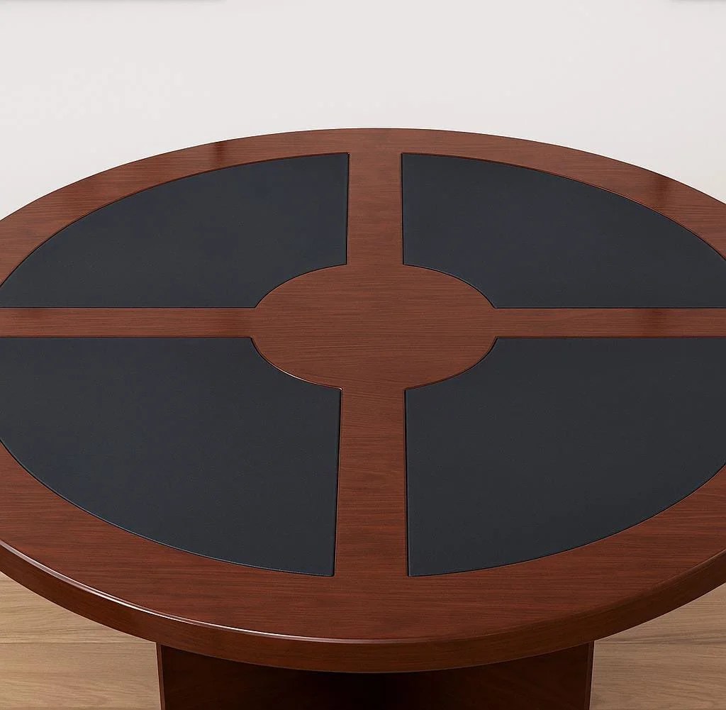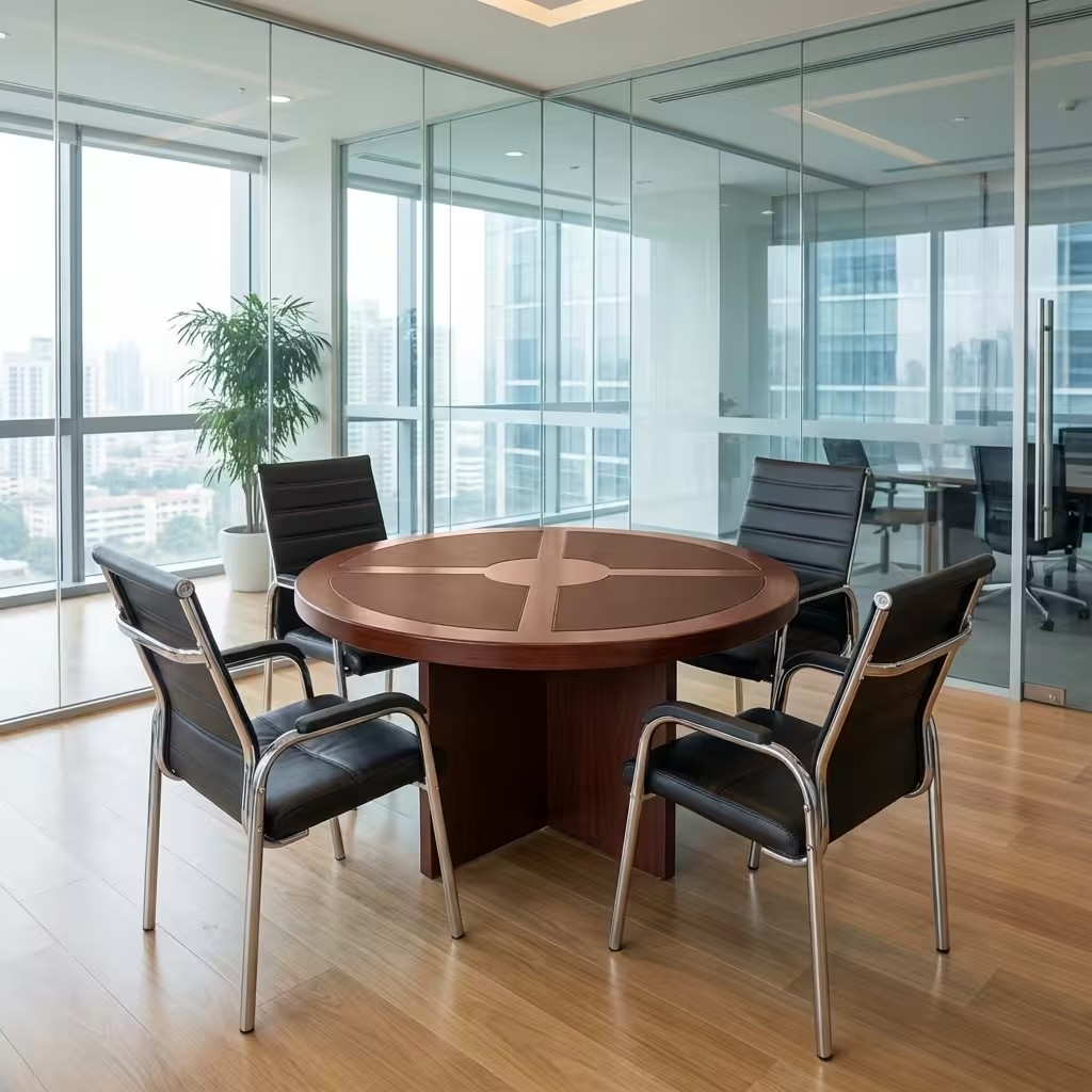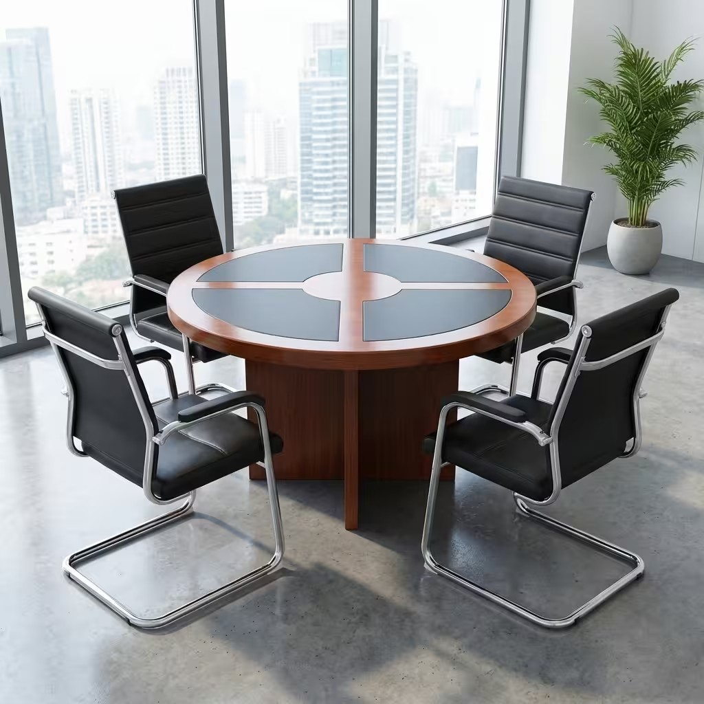 The round tabletop design allows everyone seated to engage naturally without barriers, promoting better teamwork and communication. Whether used in executive boardrooms, meeting rooms, or collaborative workspaces, this conference table helps create a balanced and professional environment.