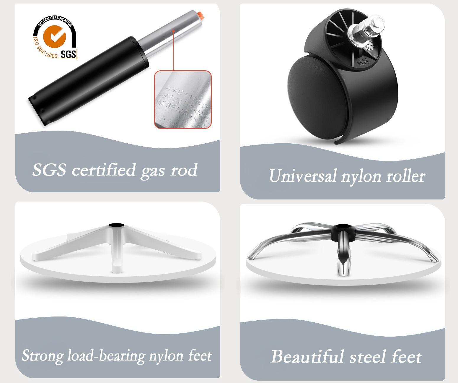 The chair is built with a strong metal base and a reinforced frame to ensure stability and durability. Smooth-rolling caster wheels allow effortless mobility across office floors and carpets.